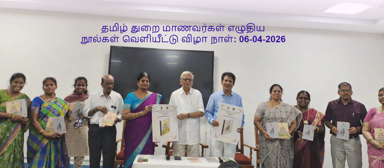 P. Rithika (44549), Department of Commerce (shift - 1), participated in the state level competition conducted by the DIPR on the topic "Tamil Vellum". She won the prize in the drawing competition and received a medal with a certificate from the Honorable minister Thiru. Mu. Pe. Swaminathan.