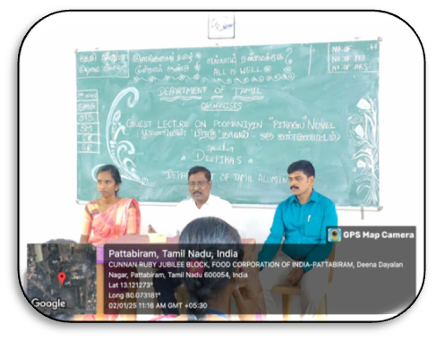 Department of Tamil Organised “Guest Lecture on Poomaniyin Piragu Novel” on 02nd January 2025, Resource Person S. Deepika.