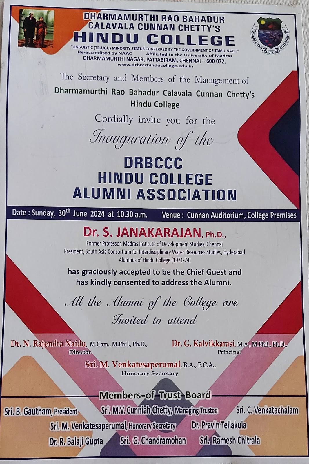 The Alumni Association inauguration was done on 30th June 2024 headed by Dr.S.Janakarajan