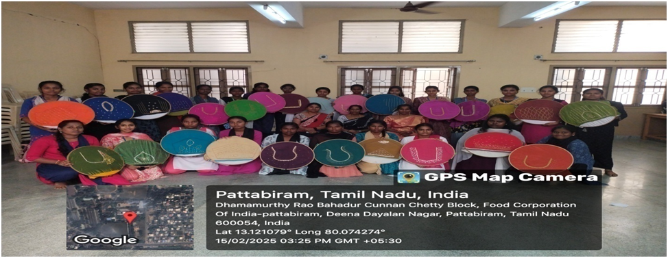The ED-Cell organized 5 days Aari work Certificate classes by KVIC from 12th february 2024 to 16th february 2024 in Cunnan Mini Conference Hall with 52 students with 2 batches from several departments. The valedictory ceremony was conducted at the end of the day at 3.00 p.m with silent prayer. Welcome address given by Prof. P. Vinodhini, Convener of ED-Cell, followed by Principal Madam and Director Sir. |